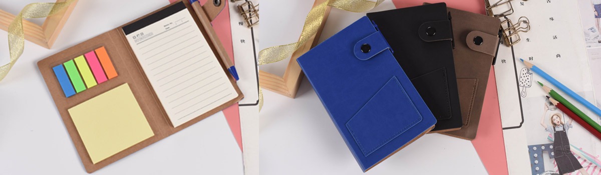 Simpatico set di taccuini con copertina morbida in pelle PU personalizzato con nota adesiva